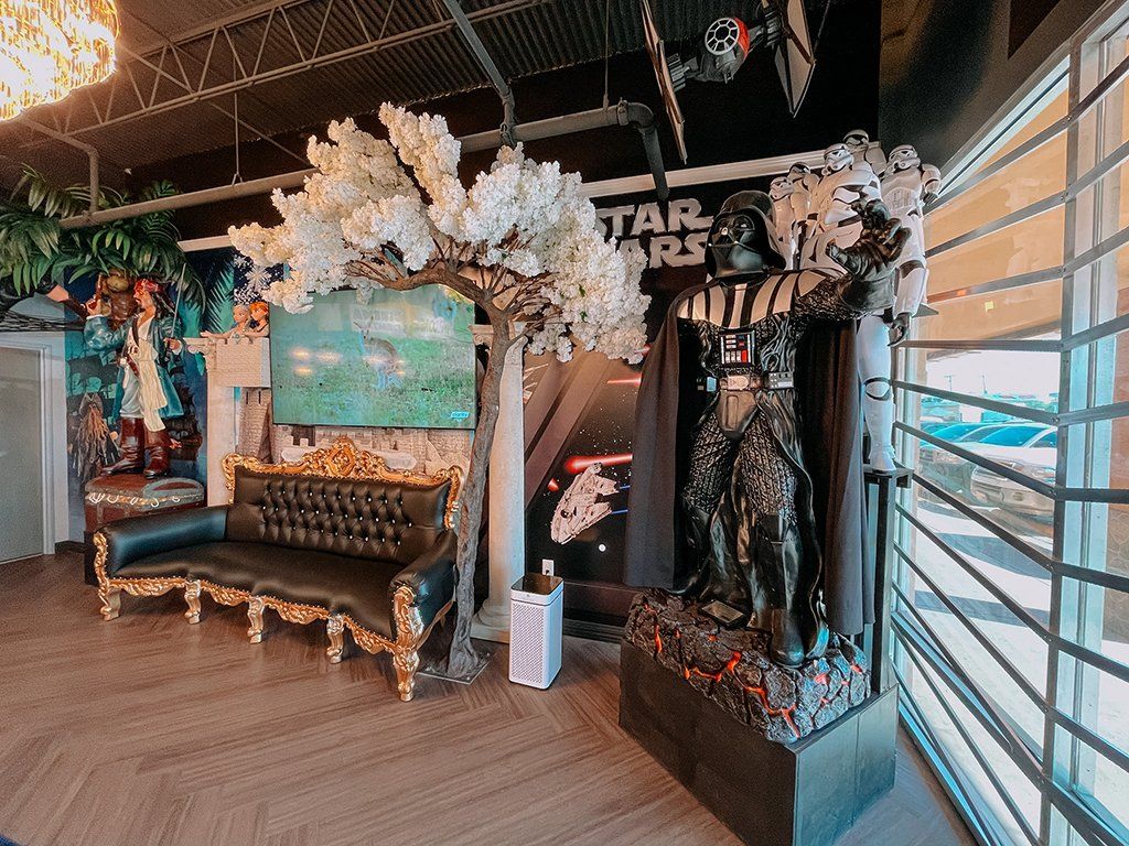 At Cinema Dental, we believe that visiting the dentist should be an extraordinary experience that leaves you smiling from ear to ear. Our lobby is meticulously designed to immerse you in the magic of Hollywood, featuring stunning replicas of iconic film sets from movies like Frozen, Star Wars, and Cars. As you step inside, you'll be greeted by the twinkling lights of a movie theater marquee and the excitement of a red-carpet premiere. Our attention to detail extends beyond the decor, as we have carefully crafted a comfort-focused environment that caters to patients of all ages. From the plush seating and soothing music to the friendly smiles of our staff, every element is designed to put you at ease and create a positive association with dental visits. As a leading Dallas dentist, Cinema Dental is committed to redefining the way you perceive dental care, making it an enjoyable and memorable experience.